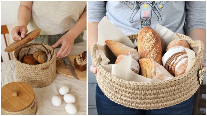 این سبدها با استفاده از تکنیک گرهزنی نخ یا طناب، ظاهری دستساز و منسجم دارند و میتوانند برای نگهداری نان، میوه یا حتی وسایل کوچک آشپزخانه استفاده شوند.